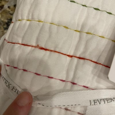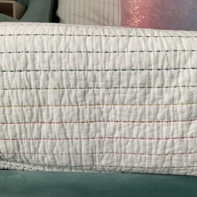 [This review was collected as part of a promotion.] A lovely quilt set with rainbow threads on a true white fabric. This set is a thinner quilt, but that's what we usually use with a comforter underneath during the winter season. It looks really nice on the bed and was a good compromise with the kid on something we both agreed on. She loves the colors of the rainbow, and I enjoy looking at it as well. The colors could match many different color schemes, but she already has a rainbow unicorn room so this works nicely.