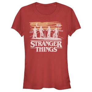Juniors Womens Stranger Things Starry Bike Ride T-Shirt - Red - Small