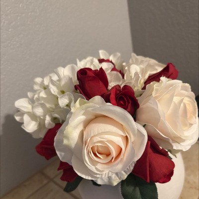 Vickerman 14" Artificial White Rose and Hydrangea Bundle.