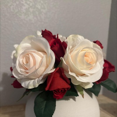 The flower arrangement is as it's pictured and looks like real flowers! Its a great addition to decorate my room and gives my zoom background a great ambiance. Wish it was a little cheaper in price so that I could have bought another bundle.