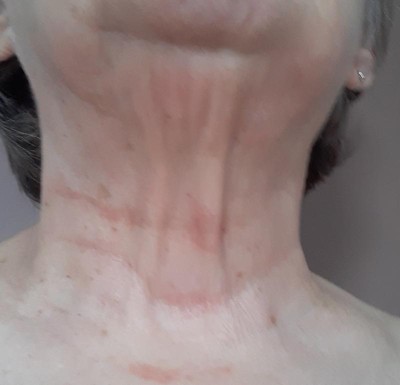 I have only used the product on my neck a couple times. It reactivated a rash that I once (5 years ago) had on my neck that I believe was yeast-based. Now I'm back treating it with two different dermatological prescription creams that take several weeks to work. Ugly looking neck! Glad it's turtleneck weather! Can't seem to add a photo.