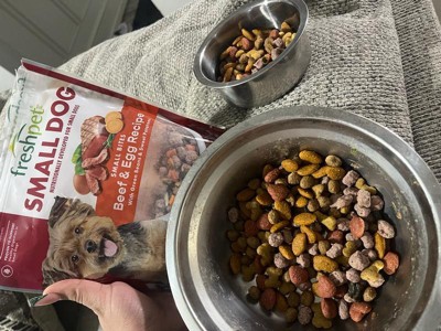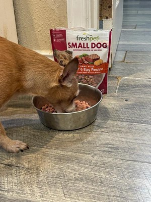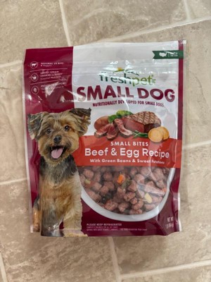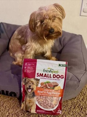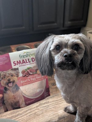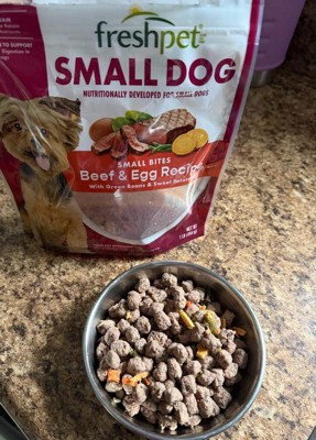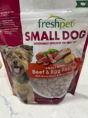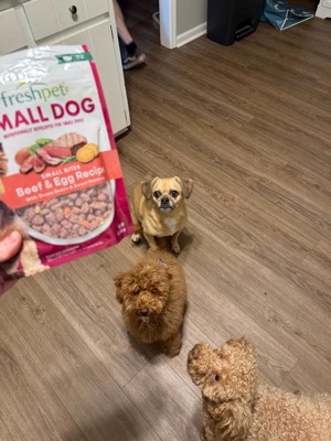 [This review was collected as part of a promotion.] Freshpet’s beef and egg was developed for small dogs. It’s high in protein with no fillers. Comes in a resealable package making feeding time quick and easy with out the normal “dogfood” smell. My fur baby actually likes his dry food better than this flavor of freshpet