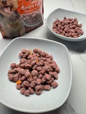 [This review was collected as part of a promotion.] Small bites, beef and egg recipe is the perfect size and flavor for my picky puppy. She starts every morning with a delicious serving and it fuels her day to keep her going. We love that! It's real fresh ingredients that will keep her healthy longer.