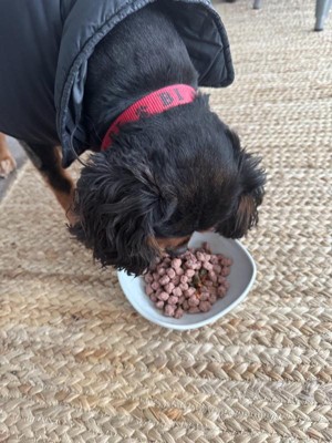 [This review was collected as part of a promotion.] This is Jaxon, and he loves the test of Freshpet. He was patiently waiting for me to put some on a plate for him. The storage of this dog food is terrific with the resealable bag, and also very easy to put a plate. The size of the food is perfect for my little Cavalier King Charles.