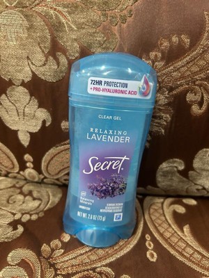 [This review was collected as part of a promotion.] Secret Fresh Collection - Relaxing Lavender Clear Gel Antiperspirant Deodorant provides optimal odor and sweat protection with long lasting freshness. Love that it contains hyaluronic acid for added benefits. Easy to apply and goes in clear.