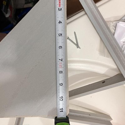 Easy to install and perfect for making any corner a functional space! The shelves are a great size and color, a little rustic/distressed grey.