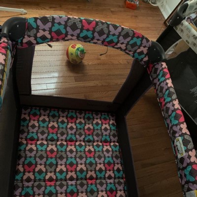 We absolutely love this playpen! It is portable, easy to assemble, and to break down. I love the butterfly pattern. You do have to buy a crib mattress for it bc the bottom is hard. Other than that it’s great!!