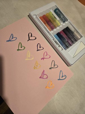 [This review was collected as part of a promotion.] These art crayons are awesome. Beautiful shimmering colors!. Crayons are retractable, the Crayons are perfect for most surfaces and can are water -soluble.