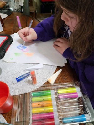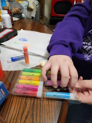 [This review was collected as part of a promotion.] Love this brand Faber-Castell Gelatos 15-piece set. The colors are very attractive. This set includes the 15 vibrant colors. This blends easily with either my finger, the 2 included blending tools or the brush. Either blending method worked the water soluble colors very easily and smoothly. I used the color sticks on paper and fabric, but I love it that the sticks are also perfect for ceramics, cardboard, or wood.