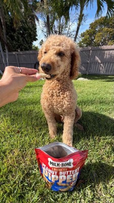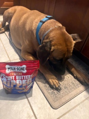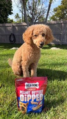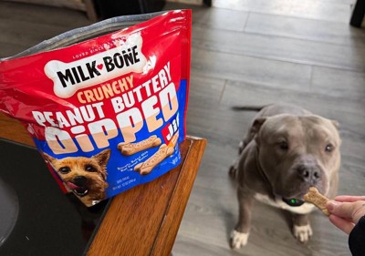 [This review was collected as part of a promotion.] My dog, Potato, absolutely loves these Milk Bone treats! He loves peanut butter so I knew he would be so happy! They are the perfect crunch and flavor for him. Great size for my dog and a perfect reward when he does something good.