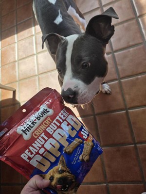 These peanut butter dipped dog biscuits have become a favorite among many dogs, offering a delightful combination of crunchy texture and real peanut butter flavor. Guests appreciate the resealable packaging that keeps treats fresh and the wholesome ingredients that ensure a healthy snack. Many dogs eagerly anticipate these treats, making them perfect for rewarding good behavior or simply spoiling your furry friend. Overall, they are a great addition to any dog's treat collection.