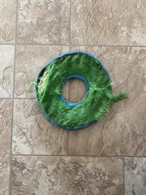Doesn’t fly! So bad. Listen to the reviews. Was fraying when I got it home. So so bad. Just don’t. Especially if you have a toddler that wants to join in on the fun they won’t be able to throw this bc it’s a poorly designed frisbee that goes straight for the ground. Feeders supply has a red/yellow FS brand one for 7.99 that works great. It’s fabric and they can grab it with their teeth. Ditch this I’m re buying my feeders supply one it glides and the toddler can actually throw it surpassingly well.