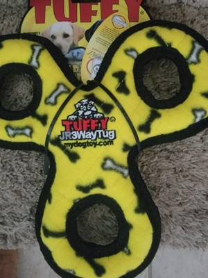 Tuffy Junior 3-Way Bone Print Tug Dog Toy - Yellow - S/M: Floats, Squeaks, Fleece Material, 0.4 lbs