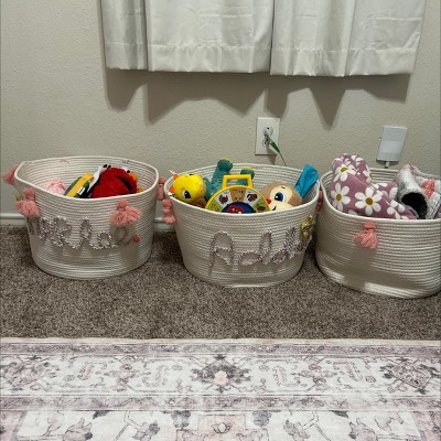 I love these baskets. They’re so adorable and functional. They look great in my daughter’s room and hold a lot more than you’d think. They hold up well against getting the beating from my kids pulling them down to play. I’d recommend these to all my busy mamas.