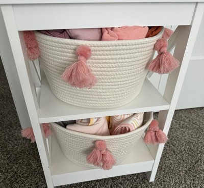 Small Coiled Rope Kids' Basket with Tassels Natural/Rose Pink - Pillowfort™