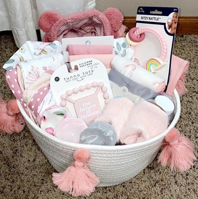 This basket is perfect for a baby shower gift basket!