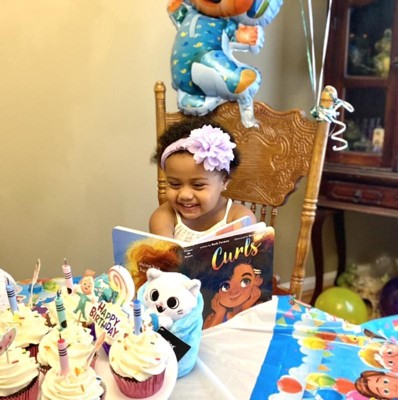The cutest & most loved birthday present of the party!!! Our family has a mixed little girl and finding a book about her hair was so exciting. Icing on the cake is that she absolutely loved it and so did her Mimi!