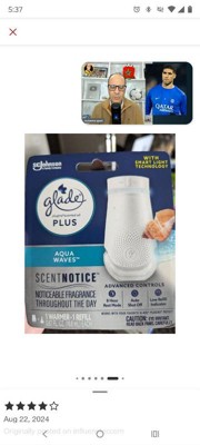 [This review was collected as part of a promotion.] I love this Glade Aqua Waves plug in! I’ve used Glade products in the past and have always appreciated the amount of space that the fragrance can fill. This is no exception. I have it in my office, but I can smell it through my whole entry way. I also enjoy that this doubles as a night light, what a perfect way to improve on the classic Glade plug ins! I will be repurchasing additional for my home, especially considering the reasonable price.
