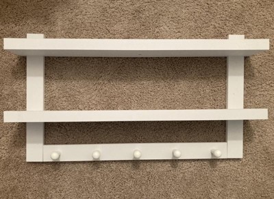 29" x 16" 2-Tier Ledge Wall Shelf Organizer with Five Hanging Hooks White - Danya B.