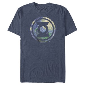 Men's Justice League Green Lantern Starry Night Logo T-Shirt - Navy Blue Heather - Large