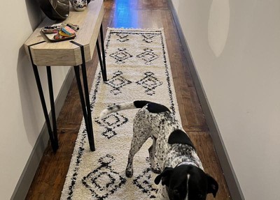 This rug is perfect! Absolutely happy with my choice. It’s always hard buying online sight unseen and relying on reviews, but this was exactly what I was looking for in my long entry hallway. The rug is thin (but not cheaply made thin!) but the pile is full and comfy underfoot. The colors are beautifully done. The picture shows how the rug laid fresh out of the package. She needs some minor settling and she will be perfect. This rug was a great price and showed up earlier than expected. Definitely recommend.
