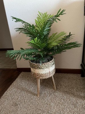 The quality of this artificial palm plant and attached stand really surprised me. The palm branches are slightly flexible which allow me to extend or move them to make the plant look fuller. From even a short distance the palm looks real! The woven basket is extremely complimentary to the natural style of my home. It's fairly lightweight but the legs are sturdy enough that our tiny toy dog will not knock it over. I used to live in a tropical climate where I had real palms in my yard so this is a nice alternative now that I live in the Midwest. It really adds something special to the look and feel of our home.