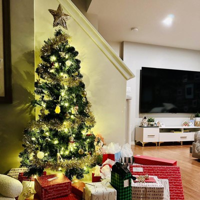 This half tree is an excellent choice for guests with limited space, providing a beautiful and sturdy option for holiday decorating. Its pre-lit feature saves time, while the realistic look with pinecones and flocking adds charm. Easy to assemble and fits well against walls, it is perfect for small apartments or cozy corners. Guests appreciate its fullness and quality, making it a delightful addition to any festive setting.