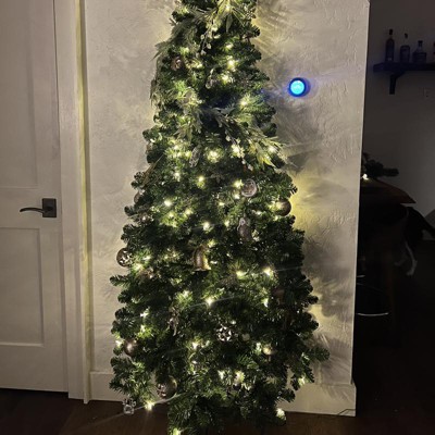 Bought this half tree to replace a much more expensive one (The Best Tree place) that had to be returned for an electrical issue. This tree is skinnier but much fuller and doesn’t show as much open space on the back half. So glad to have found it!