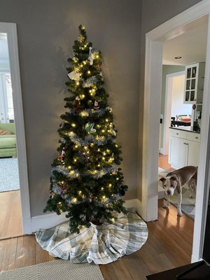 Home Heritage Half Pine 7 Foot Pre-Lit Artificial Christmas Tree Holiday Decor with 150 Warm White LED Lights and Stand, Green