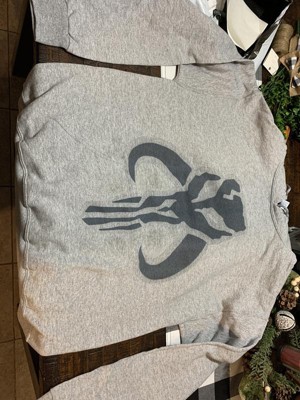 Men's Star Wars The Mandalorian Mythosaur Skull Logo Pull Over Hoodie - Athletic Heather - Medium