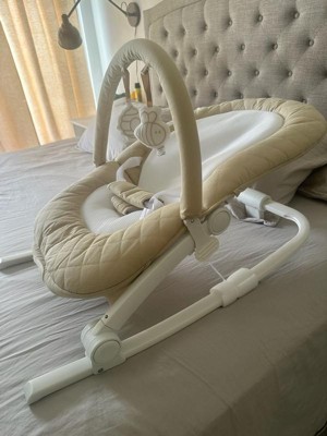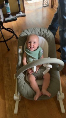 [This review was collected as part of a promotion.] Obsessed!! Love that it's a tool-free assembly and SO easy to put together. Gender neutral colors so it will fit any room theme. The 2 position recline option, combined with the sound and vibration unit soothes my baby every time! It's light enough to move from room to room and the toy bar can be removed. Cushioned VERY well so your little one always stays comfortable. Removable, washable cover. Folds up quickly and flat making storage or travel a breeze! Would absolutely recommend to any mama looking for a great rocker & bouncer!