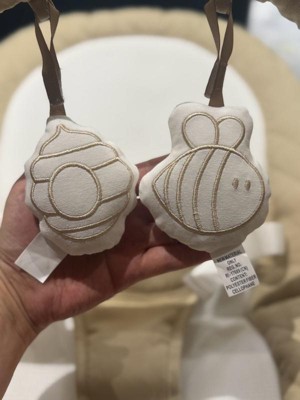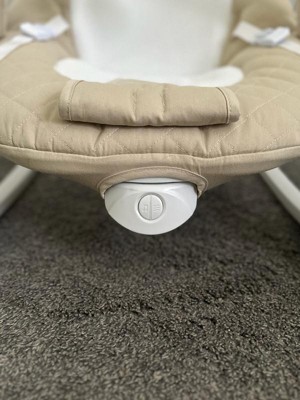 Do NOT buy this rocker! 1) it has a vibration feature that is only accessible when you play the “go to sleep baby” tune on repeat for 15 minutes - why would designers combine these features? 2) it barely rocks or bounces even with a strong kicking baby. You have to sit there and push it for any effect 3) the cute moon and star? The moment my 4 month old finally was interested in playing with these he was already strong enough to take it off. He will have pulled it off within moments of trying to play with them. Such a sad waste of money!