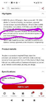 Love the product, however, the description clearly states 652 items including 50 piece Bonus set of blocks. I received only 600 pieces. The Bonus set was NOT included!!! Target - you Need to FIX this! This is deceptive and false advertising! I took this to a local Target manager and I was told to return this and reorder a new set. I just received the new set - still NO Bonus set! I would still recommend Keva Blocks - just not this set if you are expecting to actually receive 652 items as described!