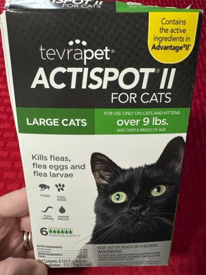 TevraPet® Actispot™ II is a monthly vet-quality topical flea & tick solution containing imidacloprid and pyriproxyfen – the active ingredients found in Advantage® II, but COSTS LESS. Effectively prevents and kills flea, flea eggs & flea larvae; breaks the flea life cycle preventing reinfestation! Compare this affordable and effective product to Advantage® II for Cats. Actispot is available in a six-month supply for superior protection. For use on cats & kittens over 8 weeks weighing 5-9 lbs .