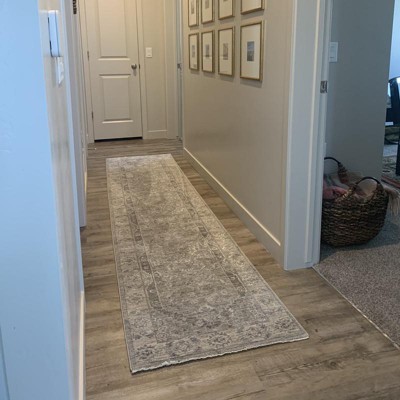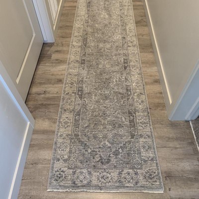 Relax into the beauty of this quietly stunning Asher Collection area rug with classic Persian design. Its center medallion, intricate florals and wide decorative border are enhanced with softly faded transitional grey tones, for the look and feel of a vintage Persian rug. Its power-loomed, poly-blend low pile combines modern performance with luxurious hand-feel.