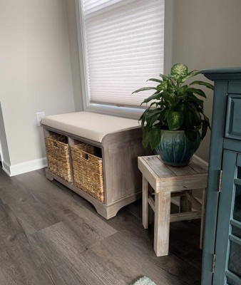 Love this bench. Hides the shoes and a perfect place for the kids to put their shoes on at the bottom of the stairs.