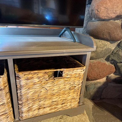 Love this bench it comes completely put together but the baskets could use liners.