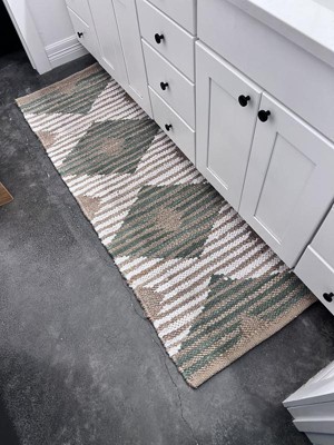 From far away, this rug is gorgeous. I love the olive green that will match our towels perfectly. But up close, there are colors (blue, red, & orange) that obviously don’t belong. I think I got one with a defect. I’ve been a rugsUSA buyer for many years and this is my first negative experience.