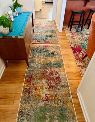 Brighten up your space with this colorful abstract area rug. Made of durable synthetic fibers, this floor covering is built to last in high traffic areas of your home. With a unique combination of bright color hues, this rug pairs perfectly with any contemporary or bohemian décor. Create the home you’ve always dreamed of with our pet-friendly and easy to care for area rugs