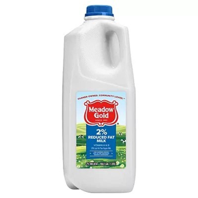 Meadow Gold 2% Milk is a reduced fat milk with vitamin A and vitamin D, making it a wholesome choice for the entire family. Creamy and delicious, this 32 oz milk has 8 grams of protein and 25% of the daily value for calcium with vitamin D in every serving. Pour this 2% milk into a tall glass for a midnight snack, enjoy it with breakfast, or use it as a base for your cereal. This half gallon of 2% reduced fat milk is convenient for a small family and a nutritious drink for an individual. Meadow Gold dairy milk meets special requirements in safety, nutrition and production and reflects a commitment to the highest standard of dairy processing for over 50 years. This half gallon of 2% milk comes from dedicated family farmers who take pride in nourishing communities. At 130 calories per serving, 2% Reduced Fat Meadow Gold Milk is a wholesome alternative to whole milk.