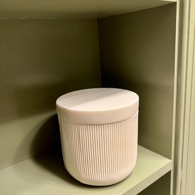 This is for my kids bathroom to put cotton rounds in. It’s nice and heavy and sturdy and I liked the cream color and rib design
