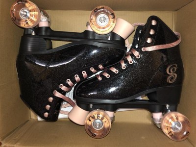 Skate in style with the Candi Grl Sabina artistic quad roller skates. Pick your favorite color, lace them up and hit the sidewalk, rink, or park. Skaters of all ages and any skill level can enjoy the comfort, support and precision of these roller skates. They feature an easy-to-clean faux-leather upper on a lightweight High Impact chassis. The trucks and cushions help guide your turns and provide control so you can dance, glide, and spin to your heart's content. Indoor/outdoor 56mm x 33mm polyurethane wheels have good grip and bounce on smooth surfaces and can roll at fast speeds thanks to Bevo Silver-5 Race Rated bearings. These skates fit true to women’s whole shoe sizes. The Candi Grl line of skates by Roller Derby Elite mixes fun and fashion with a dash of nostalgia. Established in 1936 by the creator of the roller derby sport, Roller Derby Skate Corp. has helped bring the joy of skating to many throughout the decades, and is considered to be "America's Skate Company". High-top freestyle boot for all ages and skill levels. Synthetic upper boot with good ankle support. Lightweight High Impact chassis with PU cushions . Indoor/Outdoor wheels (56x33mm Urethane); Bevo Silver-5 Race Rated chrome bearings. *These skates fit true to women’s whole shoe sizes.