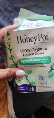 Honey Pot 100% Organic Cotton Cover Cooling Herbal Infusion Overnight Pads - 12 ct