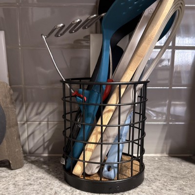 Iron and Mangowood Wire Utensil Holder Black - Threshold™: Kitchen Utensil Caddy, Silverware Storage, 6.6" Height