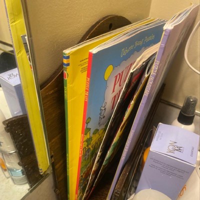 This item is really weak and is extremely small, holds a few thin magazines. The cut outs that fit together keep breaking and it’s constantly falling apart. It’s such weak wood that it’s not meant to continuously fixed and put back together. Save the time and do not buy this product. It’s going back to Target.