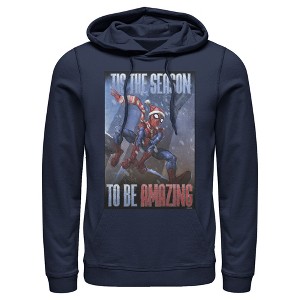 Men's Marvel Spider-Man 'Tis The Season To Be Amazing Pull Over Hoodie - Navy Blue - Medium