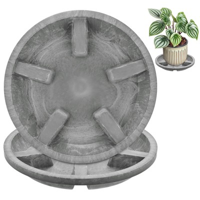 Sunnydaze High-Fired Glazed UV-Resistant and Frost-Resistant Ceramic Outdoor Flower Pot Planter Saucers - 9" Diameter - Gray - 4-Pack