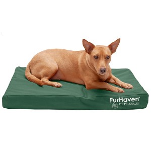 Give your pet the restful sleep they deserve with a FurHaven Deluxe Indoor/Outdoor Orthopedic pet bed. Weather-proof cover is made from an outdoor durable, water-resistant coated poly-canvas. Deep convoluted ("egg crate") foam provides your pet with extra support and cushioning for maximum comfort. The Jumbo Plus option, for larger breeds, features solid slab orthopedic foam for greater support and comfort. Your pet will benefit from the convoluted orthopedic foam which is designed to evenly distribute weight and alleviate painful pressure on muscles and joints. Better rest for your pet can lead to improved overall health. This bed also features an easy, step-on "mat" design for older and disabled pets.