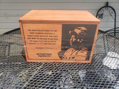 [This review was collected as part of a promotion.] The kindling comes in a beautiful wood box. The box we received had a picture of Glacier National park on one side and a quote from Theodore Roosevelt concerning our national parks on the other side. This will be a great box to use for our kindling for years to come. I really appreciated the company's support of our national parks through their product. The kindling inside the box was in nice small lengths, it was dry, and it was full of pitch so it started our fire quickly.