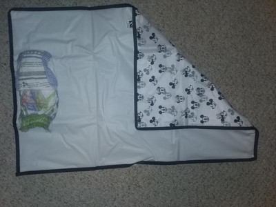 I am a serious Disney fanatic and this was such a cute baby bag find. I already had a Minnie Mouse diaper bag and car mirror so having this to put in the diaper bag was awesome. It doesn’t take up much space at all and is nice and big when using a public restroom changing table. It is white so it stains easily but it’s easy enough to wipe down with a Clorox wipe. It’s survived me 2 babies usage and I plan to hand it down for friends to use as well. What a great quality product!
